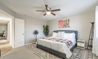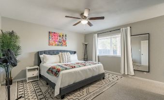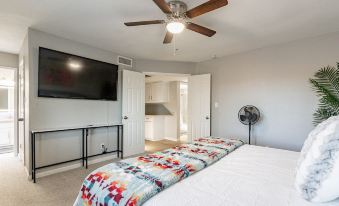 Enjoy our updated and vibrant 4-bedroom 2-bath house with an amazing back area w/ private heated pool, mini golf, green wall w/ "It's The Vibe For Me" neon sign photo opp, and everything you need to vibe out. Each bedroom has its own smart TV to sign into your favorite apps as well as TV out back that swivels to watch while swimming, putting, or chillin' out. There is also a closing gate to the pool for families with children.