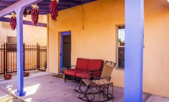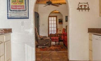 Beautiful, private casita one block from the plaza. Historic charm with modern conveniences. Perfect for quiet retreat. Fenced flagstone patio in back yard fully equipped with gas grill, outdoor fireplace, outdoor dining area and french doors opening from the house. Large front yard fully enclosed. Full front porch creates shade for rocking chair. This house is peaceful but just steps from the fiestas and activities on the historical Mesilla Plaza. Shops and restaurants, an independent film theatre and a bookstore within two blocks. Boutique wine bar with a lovely shaded patio and live music less than a block away. The house is fully equipped with all amenities including everything for the novice chef. Air conditioned for summer comfort.