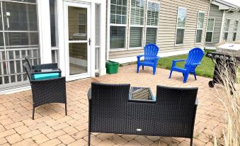 - Outside patio: Chairs, fire pit, grill. House is on corner lot so plenty of grassy area for corn hole (included) and gatherings