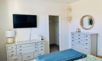 Master Bedroom Suite: Includes king size bed, Smart TV, large luxurious walk-in shower and soaking tub.