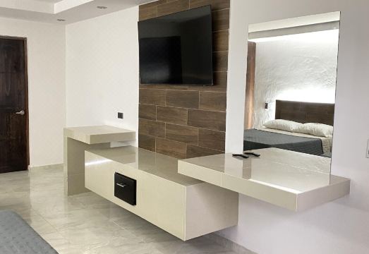 La abitacion no es lo que se muestra en las fotos los cuartos estan sucios la sabanas quemadas por cigarros el are horrible apesta el personal muy groseros es lo peor que e visto tuvimos que buscar otro hotel por que las condiciones esta como si fuera un basurero