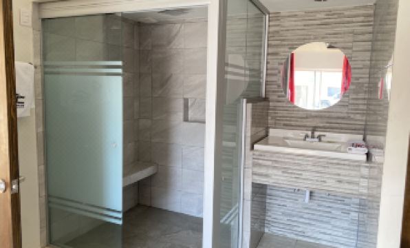 It is a “seggs” room! Water heater didn’t work. The towels and sheets were stained and again… this is a “seggs” hotel! So that’s nasty.