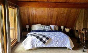 Enjoy the outdoors year-round in this cozy chalet nestled at the end of a beautiful neighborhood. Relax by the fire after a day on the mountain or enjoy a campfire with the family in the spacious backyard. This 3 Bedroom 2 bath home has updated flooring and new family room furniture. Visitors will enjoy the large living room with wireless internet for all your apps (Hulu, Netflix, Amazon, Apple tv+, Disney tv). Just log in and enjoy either on your smart devices or on our 50 inch tv. The Master Bedroom boasts a king size bed with a sliding glass door that opens onto a private deck. The Second bedroom is a highly desired bunk room featuring 3 new bunk beds and a smart TV great for kids and teens. The third bedroom offers a queen bed and an attached bathroom. Enjoy a cup of coffee at the breakfast bar that offers a great view of the wildlife.