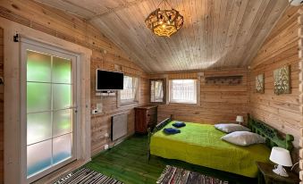 It offers 14 wooden houses with handmade furniture, equipped with modern appliances, bathrooms, air conditioners and fireplaces, and satellite TV. Each house has its own terrace or gazebo, as well as a barbecue area with a barbecue. Breakfast in the restaurant is included in the accommodation of each house, if desired, guests can connect to the "three meals a day" service according to the A La Carte menu.