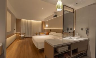 酒店房間寬敞明亮乾淨整潔,全屋智能設備做的非常貼心,尤其是直飲機,不用此茶壺燒熱水,乾淨衞生了不少,還有免費的小零食,前台小姐姐服務態度也茶几好吃,整體服務很貼心,性價比很高