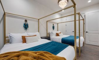 "Nashvilleurbanretreats" presents a True Unicorn! 2 Luxury Homes Side By Side with Heated Rooftop Pools and a total of 4000 sq ft of curated design for a unique Nashville experience. Enjoy the rooftop heated rooftop pools heated up to 100F with unparalleled city views. Rooftops have a half bath and beverage fridge so you can keep the fun going outside. Elevator to all levels for easy access. 3 King beds and 7 Queen beds (including 3 trundles) throughout the properties, sleeps 24. Conveniently located in East Nashville for quick access from the airport and into downtown.