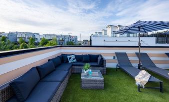 Rooftop: Private Heated Plunge Pool, can be heated to 100 degrees in colder months for year round use. Excellent sun exposure and great outdoor seating and lounge chairs for your stay. Rooftop has a half bath and a beverage fridge that can be pre stocked upon request (fee applies)