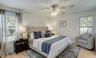 We felt right at home as soon as we arrived. The place is as advertized and the pictures are accurate. Everything we needed was supplied, dishes, pots and pans, etc. Nice washer and dryer. Beach chairs and umbrella. Very comfortable and clean. Large private fenced in back yard. Property has many large trees providing shade. Location is fantastic, 5 minutes to several beach access points with free parking. 10 minutes to historic down town. Very quiet neighborhood and friendly neighbors. Great host! Great communication, thanks Chris. New water treatment system installed during our stay, nice improvement! We would definitely stay here again.