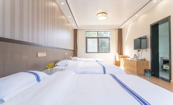 Push open the carved wooden door, and you'll instantly be immersed in the poetic beauty of Southern Anhui. Backed by layers of green mountains, in front of the lodge lies Qinglong Lake, whose blue waves are as smooth as a mirror. When the morning mist spreads over the water, the white walls and gray tiles become the blank spaces in the ink painting scroll. It is located in the core area of Qinglong Bay Chujiatan Scenic Spot. A short walk will take you to the water - friendly plank road of Chujiatan, and when you look up, you can see the flying eaves of Huiyun Temple hidden in the greenery. The fairy - tale charm of the nearby Enlong Wooden House Village, the exciting experience of Qinglong Shuanghe Rafting, and the thousand - year - old wonders of Shanmen Cave are all within a 30 - minute drive, making every journey full of exploration surprises.