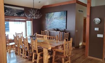 The house has vaulted ceilings throughout the main floor, offering a very spacious feeling along with great views of the mountain vistas. Enjoy a cozy cabin feel in the locally grown, hand crafted rustic log furniture. The craftsman who made this furniture created one-of-a-kind pieces for our home.