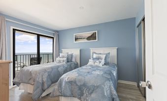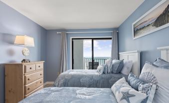 The unit includes 2 bedrooms, with a queen bed in the master suite and the option to convert the second bedroom's two twins into a King bed upon request. It comfortably accommodates 4 adults with 2 attached bathrooms, featuring a new custom walk-in tiled shower in the master bathroom. The fully equipped kitchen includes a microwave, dishwasher, blender, and Keurig coffee maker. Additionally, there's a washer/dryer in the unit for your convenience. Beach chairs and a cooler are available for leisurely days by the ocean.