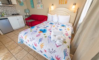 Dog-friendly studio home in the heart of North Myrtle Beach. 1 Queen Bed (sleeps up to 2) has a partial ocean view & a fantastic location; you'll enjoy all the beauty & excitement this coastal town offers. Outside, you'll find a sparkling pool, perfect for a refreshing dip on a hot day. Our home is also just minutes from all the best attractions. Whether you want to spend your days lounging on the sand or exploring the local shops & restaurants, you'll be ideally situated to do it all. Condo is on the 2nd floor with Private Balcony, No Elevator - Requires Walking Up 1 Flight of Stairs.