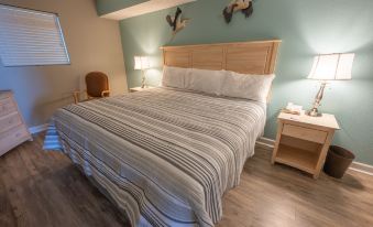 From the living area, you can walk out to the balcony overlooking the ocean. This is our hot spot for morning tea or coffee while you inhale the salt air and watch the sun peek out over the Atlantic in the mornings! The bedroom is equipped with a TV as well as two queen beds, each with new bedding and pillows.