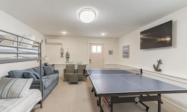* 6TH BEDROOM/GAMEROOM - Twin Bunks, Sofa w/Queen Sleeper, Large Smart TV, Ping Pong Table, Bonus Mini Fridge to keep your extra drinks chilled! Imagine having a nice extra 2nd living room for your gang to kickback and play ping pong, watch a movie, play video games or just relax away from the main living space.