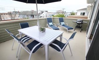 This exquisite 6 bedroom, 4 full bath, Top-Floor condo is complete with an Elevator, Fresh Linens, Bath and Beach Towels for each guest. We provide plenty of paper products, soaps and even a few other surprises! We understand you need time away and real vacation to enjoy the ocean breeze and sound of the glorious waves. No need to worry about lugging all the linens and towels, bikes, beach chairs, beach wagons or paper products either. The beds will be made for you and all the towels close at hand. We provide 5 Bikes, 12+ Beach Chairs, 12 beach tags, 2 beach wagons, indoor/outdoor games and many extras galore! Our beach home is professionally decorated with coastal colors and beautifully appointed with high end finishes and furnishings. This beautiful beach home is located downtown near everything: shopping, restaurants, beach and “world famous” boardwalk so you can park your cars on the property then walk or bike everywhere with provided bicycles. Picture yourself relaxing and enjoying the comfortable interiors, upper front deck and first floor covered deck off of the game room!