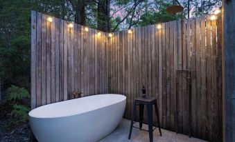 Olive is nestled in the serene village of Old Erowal Bay just a few minutes to Hyams Beach, Booderee National Park, Huskisson and Vincentia yet tucked away amongst the bush. You're close to everything yet will feel a million miles from it all when you escape to Olive, surrounded by trees, native plants, birds and wildlife. Start your day with coffee on the deck with the kookaburras and end a day spent exploring with a soak in the outdoor bath under the night sky.