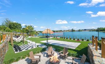 Heated pool / giant chess / fire pit/ basketball half-court /tennis court /mini-golf/ children playground/ ping pong, Hammocks/ Mini Sand Volleyball Beach/ kayaks/ Mini Soccer Field/ outdoor furniture.