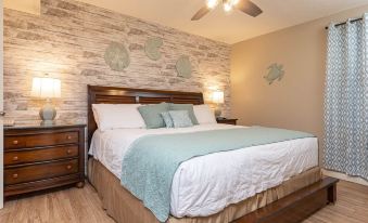 Master bedroom offers a King bed and a flat screen TV. Living room has a 55" flat screen TV and a Queen sofa sleeper making the unit able to accommodate a total of 4 guests.