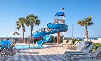 Experience the ultimate beachfront luxury at Oasis at Orange Beach, where every moment is framed by spectacular Gulf Front views. Our guests are welcomed with an array of outdoor amenities, including a captivating outdoor pool, lazy river, hot tubs, and a twisty water slide, perfect for guests of all ages. Enjoy our refreshing indoor and outdoor pools, including a newly opened adults-only oasis for tranquil moments of relaxation. The little ones can delight in the kiddie pool, splash pad, and kids play area, ensuring fun for the entire family. Relax in our large indoor heated pool, complemented by soothing hot tubs for a complete unwinding experience. The grilling area provides a lovely spot for outdoor cooking and socializing. Indulge in our on-site café & bar, featuring a tempting menu to satisfy your cravings. Sports enthusiasts will appreciate the basketball courts, tennis courts, pickleball courts, and putting green, offering an active way to enjoy the outdoors. The exercise room and sauna offer a great combination of fitness and relaxation. For added fun, guests can enjoy our outdoor shuffleboard area or visit the arcade area for more gaming fun!
