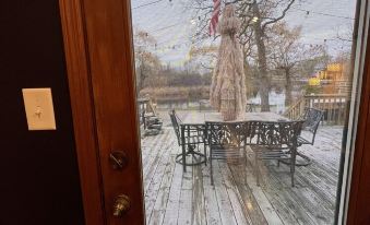 The large deck and comfy chairs are perfect for grilling out with your friends and family. The fire-pit is the perfect spot for making s’mores, telling stories and looking at the stars. Two Kayaks are available for your leisure and can be launched at the point of the channel.