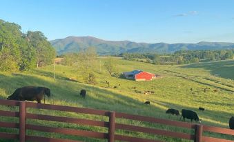 The front porch is covered with its rocking chairs, a perfect place to sit and relax with a good book and warm cup of coffee with welcoming views of the Blue Ridge Mountains.