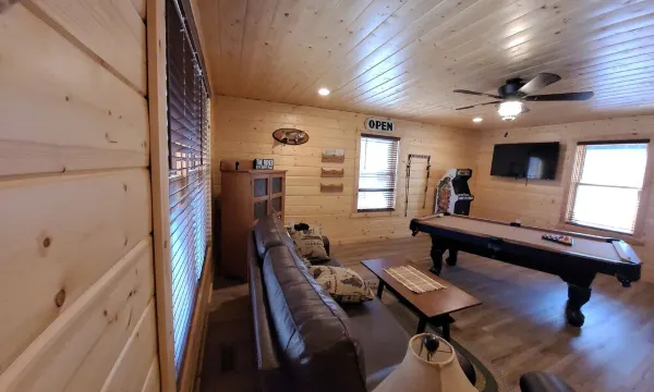The cabin feels brand new. The beds were comfortable. Extremely clean. We spent majority of our time on the front porch watching the water and enjoying the warm fall days and evenings. Kitchen was well equipped for making meals. Game room was a fun touch. Hot tub was clean and warm. Luray Caverns were nearby. Food Lion and Walmart were accessible for anything you may need.