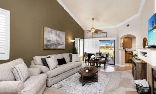 Game room/garage includes a dart board, corn hole, board games, a couch and plenty of sitting for entertaining. Also includes bikes to enjoy and explore around the property. The golfing is great and inexpensive, Club house is open for food and beverages. They can even deliver or you can cruise to the restaurant and pick up. Explore the many scenic attractions this property has to offer, orange trees, lime trees, hummingbirds HEAVEN, wrens and ducks. This property includes several ponds with water features, and stocked koi fish.