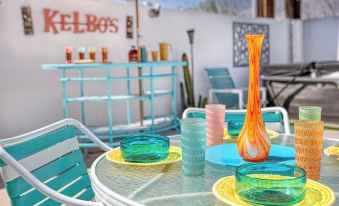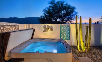 Heated pool and spa serviced twice a week. There is an extra charge to heat the pool. Spa is always heated at no charge. Enjoy listening to our huge album collection of 50’s, 60’s and 70’s Large screen wall-mounted smart TV's with YouTubeTV and Amazon Prime.