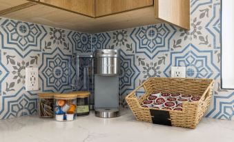 • KEURIG with pods for that morning roast along with a tea kettle.