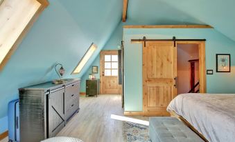 One of the beds is located between the main level and the upstairs. It is in a loft accessed by a small ladder. Please be careful climbing the ladder, the loft is a fun spot, but there is not a lot of extra room up there.