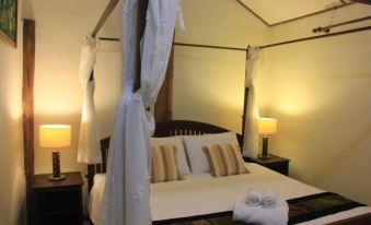 يتوفر للضيوف بين الحدائق والأنهار تراسًا كبيرًا من خشب الساج متعدد المستويات يطل على نهر لانج. كما يوفر المنتجع خدمات المساج وغسيل الملابس في مكان الإقامة. ويُمكن ترتيب خدمة نقل مكوكية عند الطلب، ويوفر مكان الإقامة خدمة تخزين الأمتعة مجانًا.