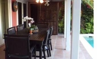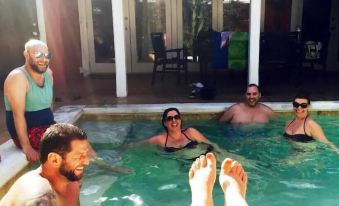 Travelers have full access to the entire house and its private enclosed courtyard with private pool. The house has 2 bedrooms with en suite bathrooms, a family room and galley kitchen. The master bedroom has a king size bed. The 2nd bedroom has 2 twin beds and there is a queen size pullout couch in the family room. Guest have sole access to the entire property. It is not a shared space.
