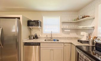 Such a cute place. The property is close to trails for both hiking and biking and restaurants.. The beds, linens and furnishings all are extremely comfortable. The neighborhood is great and safe for walking. There are televisions in both bedrooms and in the living room. The kitchen is appointed with modern appliances, a coffee maker offering an assortment of coffee options, water was already in the coffee maker, there were bottles of water in the refrigerator and a great washer and dryer. We plan on being returning guests.