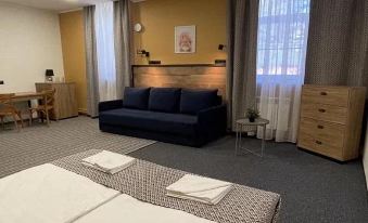 On the ground floor of the hotel there is a dining area where breakfast included in the price is organized. There is also a shared access to a microwave oven, toaster, cooler with cold and hot water.