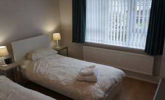 A family friendly home from home. Our games room has a table football that everyone will enjoy. We have a selection of games and puzzles and lots of reading material. In the lounge there is a TV with freeview, a DVD player with selection of DVD's. The kitchen\diner is large enough for everyone to fit in with patiio doors opening onto the mainly grassed, fenced garden. We have a downstairs bedroom and bathroom so the house is suitable for anyone not able to go upstairs. There are two double bedroom an one twin bedroom upstairs and a bathroom with shower over the bath. The house has a large combi boiler so there is always hot water.