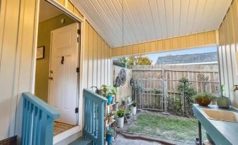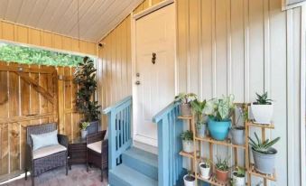 The cottage is on the same property as the owner's residence but is a detached guest house on the back of the property. It is completely private as a privacy fence separates the cottage's pathway, entrance, and patio/garden area. The property and neighborhood are both quiet and safe. There are hens (no roosters), 1 outdoor cat, and 1 dog that live on the property but because the cottage is completely private there will be no interaction with them aside from likely hearing them and/or seeing them if you choose to open the blinds. Please know that the hens live directly behind the cottage's bedroom. There is a train that passes close by and a business across the street that has truck deliveries during standard business hours. If you are a light sleeper, we recommend using the ear plugs that are provided inside the nightstands and/or the professional white noise maker provided in the bedroom. The small yet comfortable size of 240 square feet makes it suitable for 1-2 guests only. Some who are taller or of a larger size may find the custom built stand up shower small. The hot water heater is a 10 gallon tank. A very nice amenity not noted elsewhere is that the water is on a whole home filtration system that is regularly maintained so you will have purified water in the shower and the sink with no chlorine or chemical smell. You will find that although small the cottage is very clean, comfortable, and quiet. You will sleep well, be able to relax/feel at home, and most importantly enjoy all that Pensacola has to offer. Our cottage is a safe space for all races, faiths, genders, gender expression, marital status, and sexual orientations. Diversity, equality, and inclusion is a value found here.