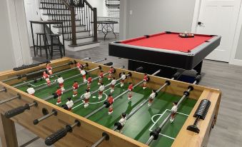 This memorable place is anything but ordinary. The newly renovated 100-year-old farmhouse sits peacefully in the midst of oak trees and a private 6-acre land. It boasts of both modern and rustic design. It is built to entertain families with a finished basement that includes billiards/poker table/foosball/darts and its own dry bar. There is even a theater room ready to welcome popcorn loving moviegoers.