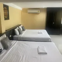 The room was very clean and basic. The location couldn't be better, being very close to the beach, night market, and seafood market, all within a 10-15 minute walk. Note that the hotel does not provide toiletries, so you'll need to bring your own. There's also no dedicated place to hang clothes to dry. We booked a family room which had a balcony, and we brought our own clothesline to make do. Overall, it was pretty good and offered great value for money. It's also pet-friendly. However, there's no 24-hour front desk, so you need to plan your check-in time carefully. Fortunately, someone from our group went ahead to check us in; otherwise, if we had arrived at 2 AM, we would have had to wait until morning.
