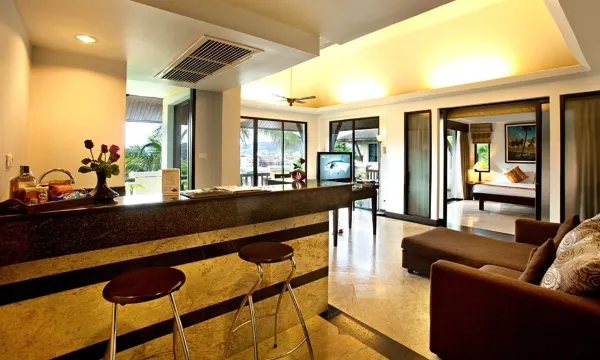 تُطل الغرف على مسبح أو حديقة، وتتميز بمنطقة للجلوس وإكسسوارات خشبية داكنة وأقمشة زاهية، وتحتوي على خزينة وميني بار وحمام خاص.