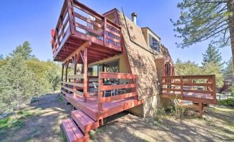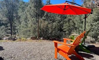 The Quail's Nest! Cute colorful retro cabin with amazing views and direct access to hiking trails. Lots of toys and games for kids and a relaxing hot tub for the adults.