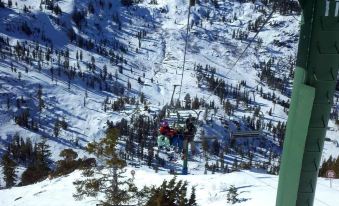 In summer, stroll out on to the deck and find yourself steps away from our private swimming pond with its' own sandy beach, Huck-Finn style rafts, and 'rock islands' to sunbathe on. You may never want to leave, but if you do the famous Five-Lakes trail-head is across the street, as are some of Tahoe's famous mountain bike trails. Two miles down the road find fine-dining at the River Ranch, Tahoe's best horseback riding stables, rafting on the Truckee River, and the world's most beautiful bike path- which runs along the Truckee River for 12 miles and leads you to beautiful Lake Tahoe and Tahoe City.