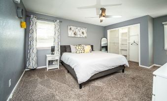 We needed to be close to the airport. This was perfect! Lots of bedrooms and bathrooms! Great backyard and plenty of parking.There wasn't a griddle for our breakfast, and it would be helpful to have a mirror in each bedroom.But, other than that, it was a wonderful place to stay!