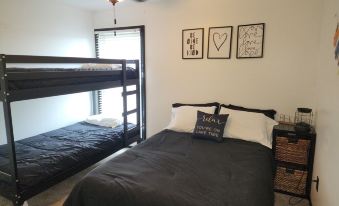 2 bedrooms: 1 bunk bed 1 queen bed and 1 double bed