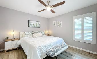 This was a wonderful home to stay in! The house was beautifully decorated and very clean and bright. It was in a quiet neighborhood but very close to many great restaurants and things to do. The beds were comfortable for sleeping and the owners provided a lot of amenities which was nice. There was a beautiful pool area with a heated pool and tiki bar . The owner was easy to work with and helpful and available with questions. Would definitely stay here again!