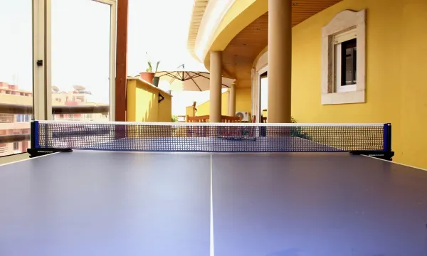 conditioning, and access to the front terrace, where outdoor seating and a Ping Pong table await.