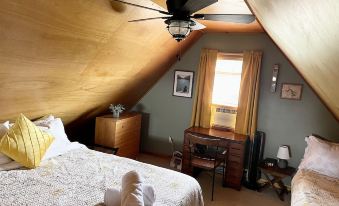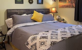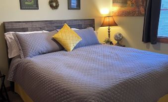 Our 800 square foot cabin consists of one private bedroom with a comfy king size bed and an open loft with queen and twin xl beds, Room darkening curtains and quality linens ensure a great night's rest. Both bedrooms have smart TVs. Foldaway bed available as well.