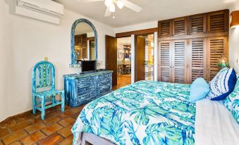 We offer two bedrooms, both furnished with luxurious king-size beds (may be split for two single beds) complete with air conditioning and adjoining Mexican modernized bathrooms. We have a fully-equipped modernized kitchen along with a spacious dining room. Our balcony overlooks Los Muertos beach and the pier. One can often observe dolphins and whales in the bay. Our favorite is watching the spectacular sunsets descend.