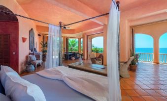 Truly the finest rental in Puerto Vallarta, Villa Estrella Mar can sleep 16 guests in 7 indescribably unique bedrooms with ensuite bathrooms. (Possible 8th bedroom can be added for an additional fee to bring capacity to 18) Vaulted ceilings, custom furniture and one of a kind art collected throughout Mexico and South America is displayed throughout the villa. Master Suite level is over 4,000 square feet with expansive ocean views and a private balconies. Walk along the beach to Old Town/Romantic Zone.
