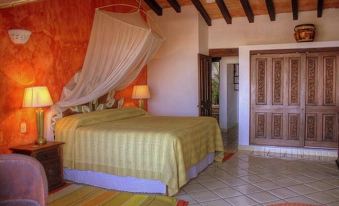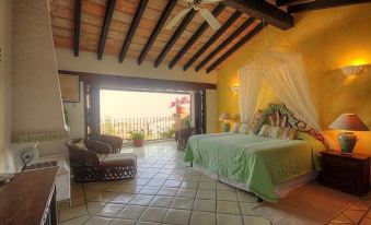 Villa Gaeta Mexico, with its Spanish Colonial appeal, has a breathtaking ocean and city view from the vantage point of every room. Each of the three bedrooms has a king-size bed canopied with mosquito netting, access to balcony and a full private bath. Wake-up or retire for the night to fresh air, bright sun, blue sky or moonlight. Rooms throughout the villa are traditionally decorated and designed for the comfort, and pleasure of our guests. Our OPEN-AIR dining area, OPEN-AIR kitchen, OPEN-AIR living room, OPEN-AIR plunging pool and deck with lounge chairs are all unencumbered by walls or windows. Our villa is truly romantic, well situated for honeymoons, families, friends and private small business retreats. Yes, we keep our guest in mind with every management decision. We aim to please from the time house staff greet guests directly from the airport to the day of departure.