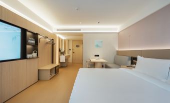 This hotel is the flagship store of Season 5.0, which opened in September 25th. Using Xiaoshan Qing as the theme, using mountains and waters as the brush, depicting vivid scenes, using mountains and waters to symbolize life, conveying an optimistic and upward attitude towards life. Drawing on the humanistic spirit from Eastern wisdom and extracting value connotations from contemporary life, our store creates high-quality experiences through the service of family and friends. With the brand concept of "natural and appropriate", we combine sincere goods with family and friend services to allow more people to experience our store's Eastern culture on their journey. The hotel has a tea space and is an ideal place for business negotiations and leisure entertainment. The hotel room is equipped with a tea table for you to taste the ancient tea culture. The hotel is equipped with a laundry room, gym, meeting room, restaurant, and parking lot. The facilities are fully equipped. The hotel is located in Haier Industrial Park, Laoshan District, 450 meters away from Qingdao Military and Political University. There are multiple schools within 3 kilometers, including No. 67 Middle School, High tech Vocational School, and Xihan Elementary School. 1.5 kilometers away from Xianger Mountain Park, 5 kilometers away from Shilaoren Beach, 5 kilometers away from Qingdao Museum, and 5 kilometers away from Fushan Forest Park. 1 kilometer away from Zhonghan Station on Metro Line 2 and 1 kilometer away from Haier Road on Metro Line 3. The hotel is 2.2 kilometers away from Laoshan Wanxiang Hui and 3 kilometers away from Licang Baolong Square. The convenient location of the hotel makes it an ideal residence for your business trips, studies, leisure activities, and shopping.